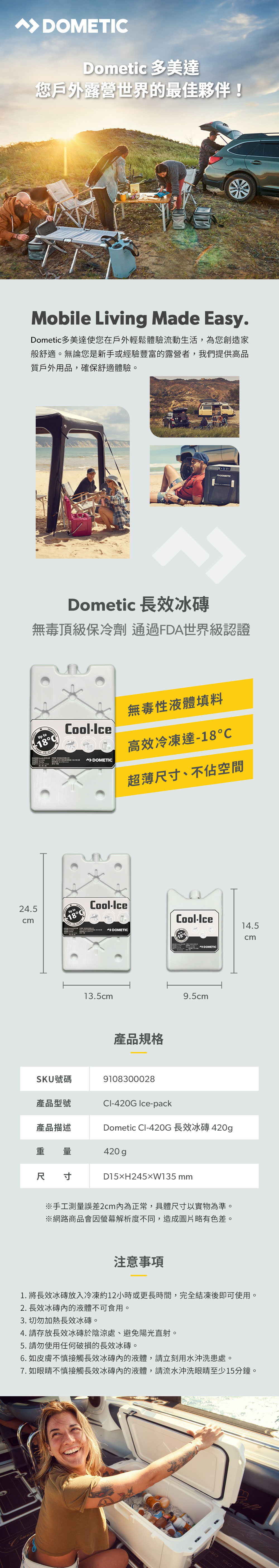 Dometic多美達專門為外出冷藏設計的冰磚,長效保冰且超薄不佔空間更持久,使用無毒頂級保冷劑,最低溫度可到達-18度C,使用DOMETIC 保冰桶時,搭配 DOMETIC ICE-PACK 長效冰磚,可以使食材保冷時效更加保鮮持久。