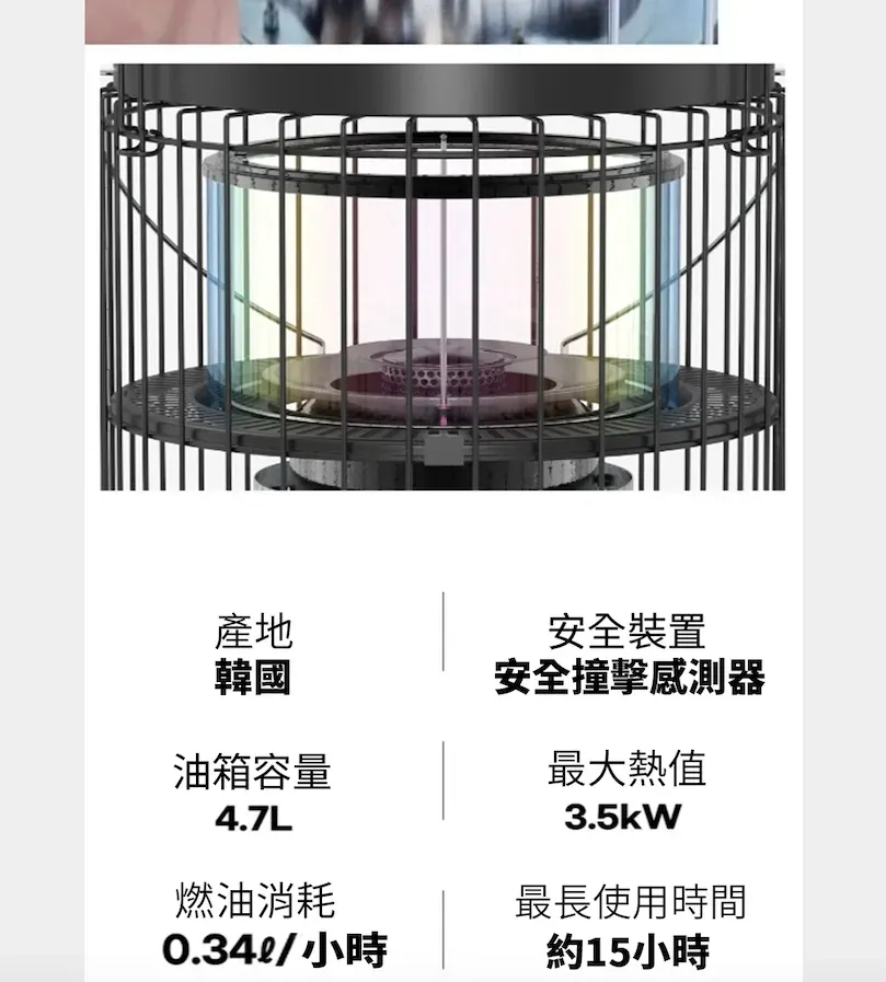 內容物:煤油暖爐 x1、安全支架上網 x1、吸油管 x1、收納袋 x1