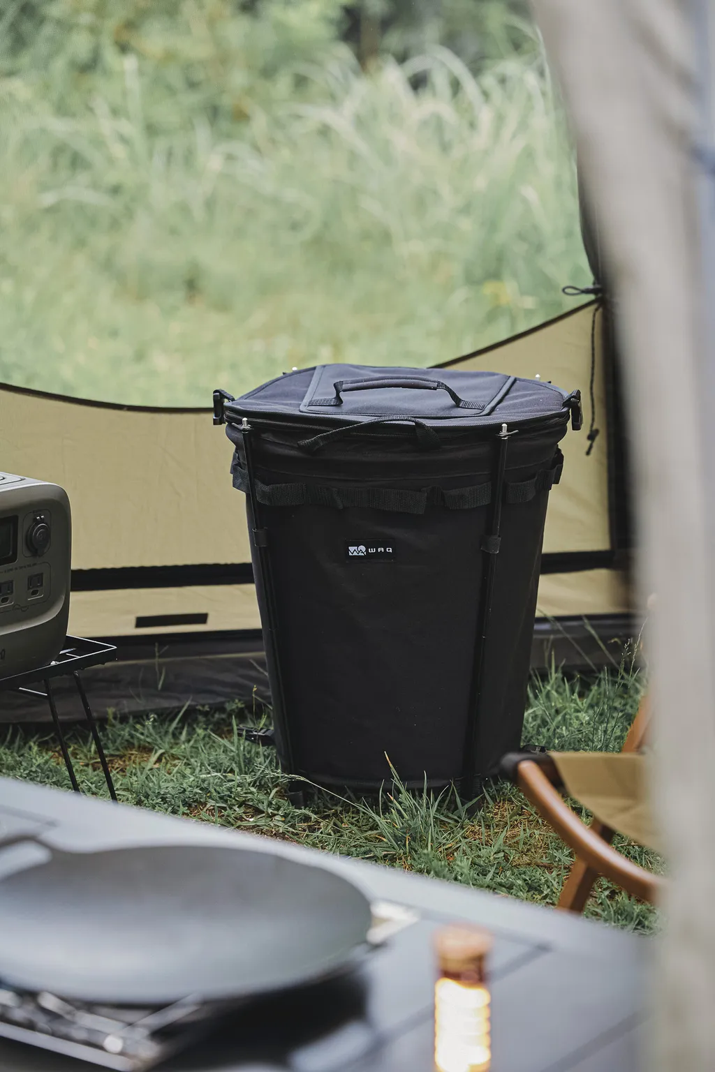 WAQ Trash Box 擁有 40 公升超大容量,讓你輕鬆處理露營垃圾,通通變不見。設計簡單,四根快拆桿結構,可自立,搭建快速,方便省時。磁鐵式上蓋讓使用更舒適,輕輕掀開即可快速使用。