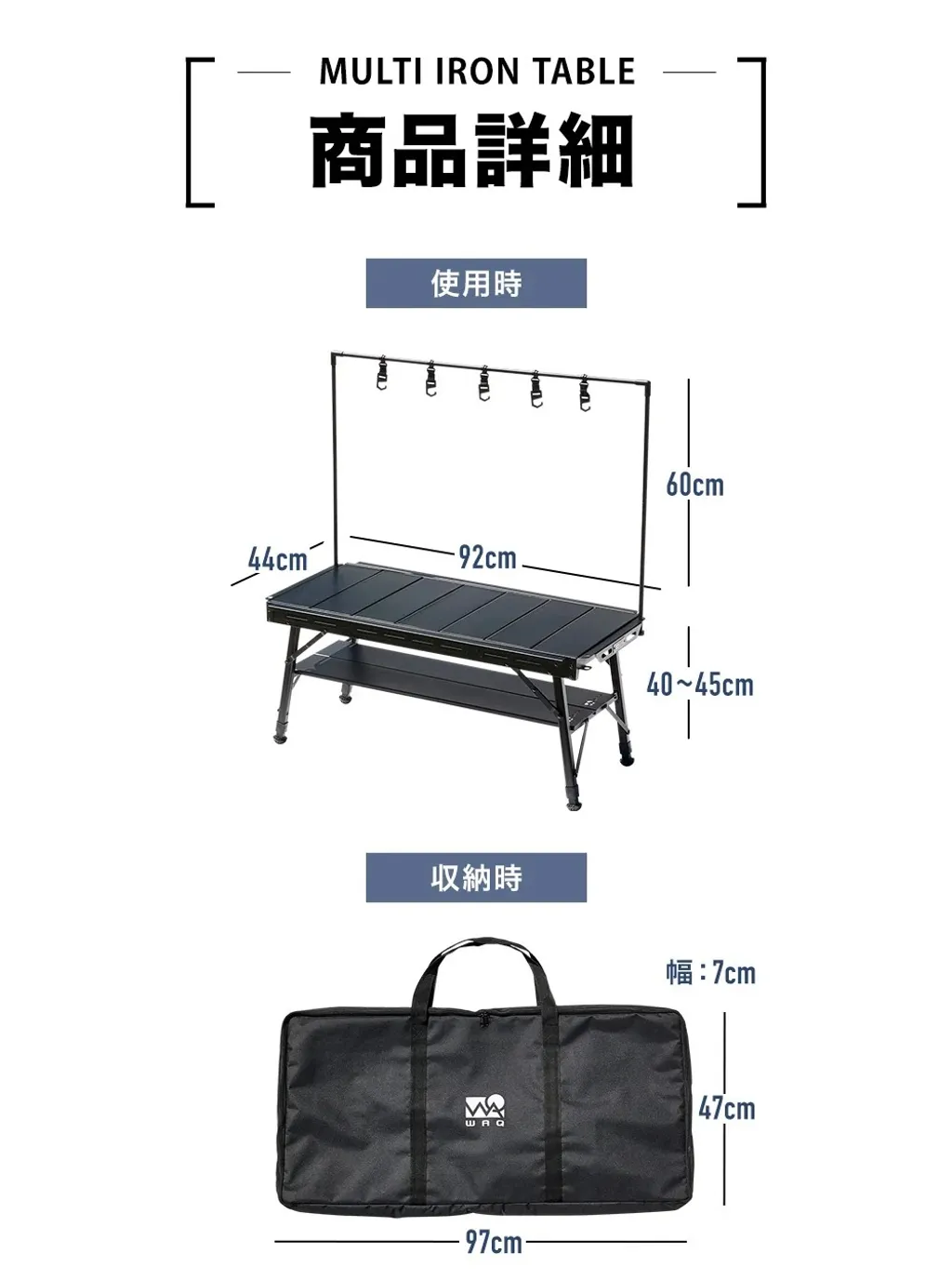 內容物:工作台本體/鋁頂板*7/收納袋/燈籠掛架/吊掛架/鋁製銅板*2/安裝用螺絲釘/使用說明書