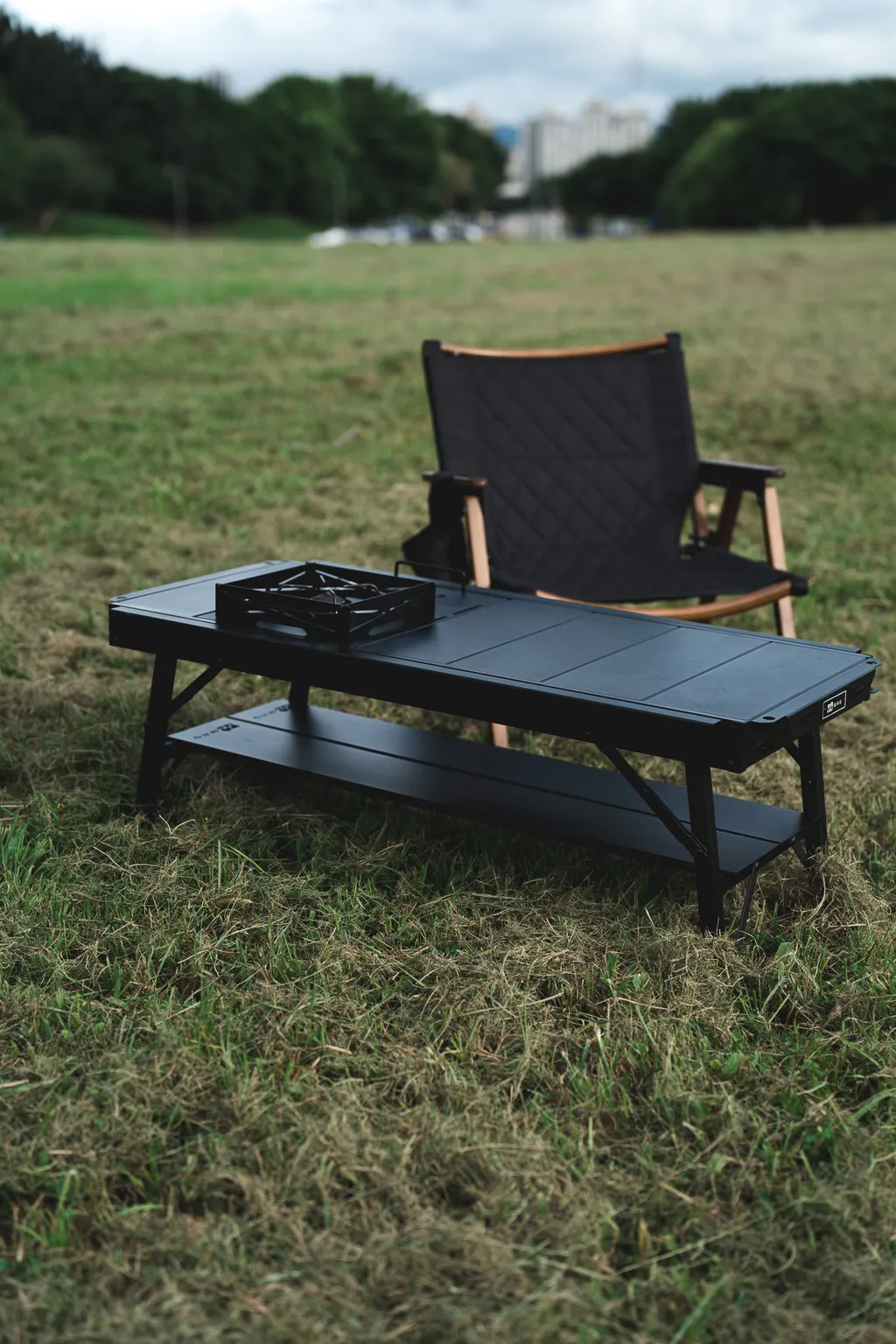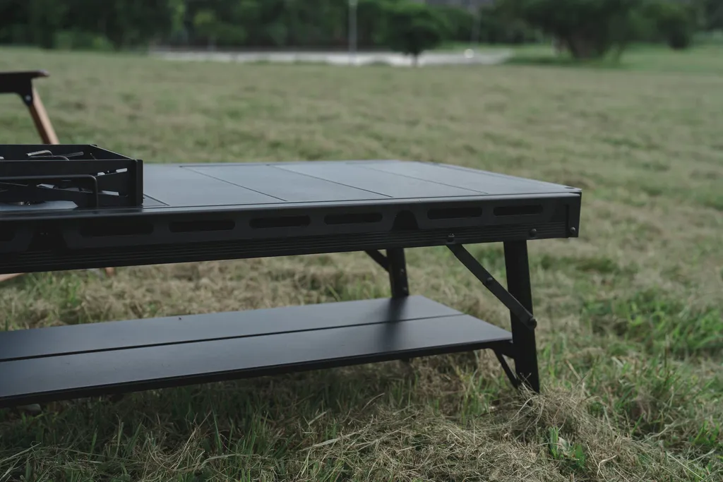 桌面採用面板是0.5單位板,並在桌底設有鋁製隔板,增加收納,使你可有效利用工作台下的空間,作為收納烹飪器具、齒輪箱,煤氣罐等必要物品空間。