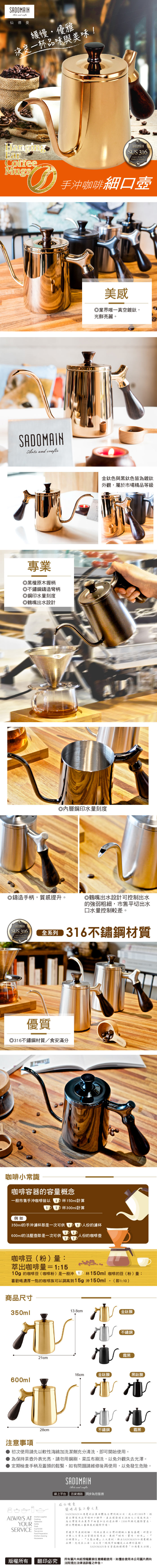 仙德曼不鏽鋼咖啡細口壺(600ml)