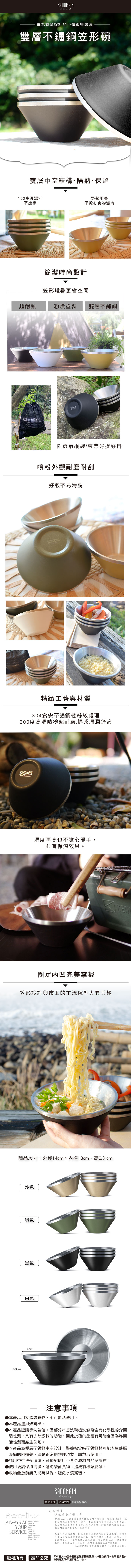 仙德曼304雙層不鏽鋼笠行碗【四入】